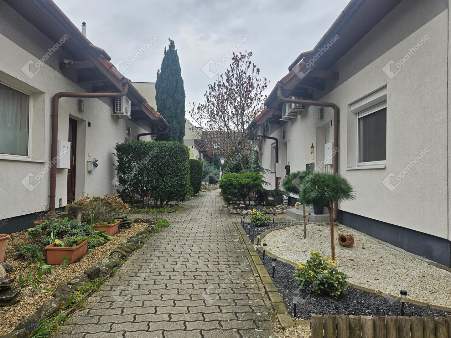 Az ablakok a saját udvarunkra és a szépen kialakított közös udvari tér felé néznek, nincs utcafronti kapcsolat így a biztonság és a csend biztosítva van a mindennapokban.
