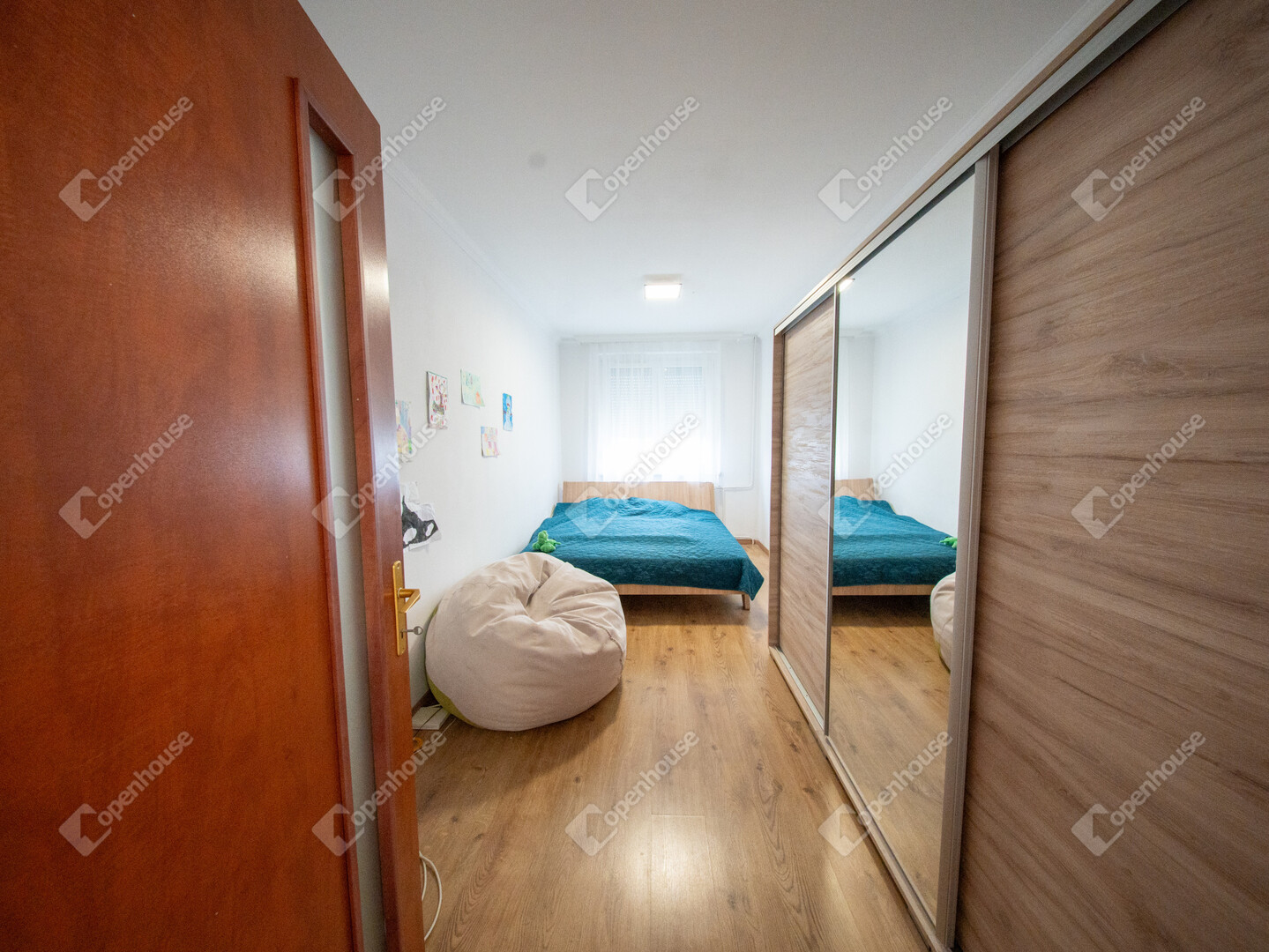 Az 56 négyzetméteres, praktikus elosztású lakás két külön nyíló szobával rendelkezik, így kiváló életteret biztosít akár párok, egyedülállók, akár bérlők számára is. A helyiségek jól szeparáltak, ideális lehet otthoni munkavégzéshez, tanuláshoz vagy vendégfogadáshoz is. A nappaliból közvetlenül kiléphetünk az erkélyre, ahonnan panorámás kilátás nyílik a környékre.