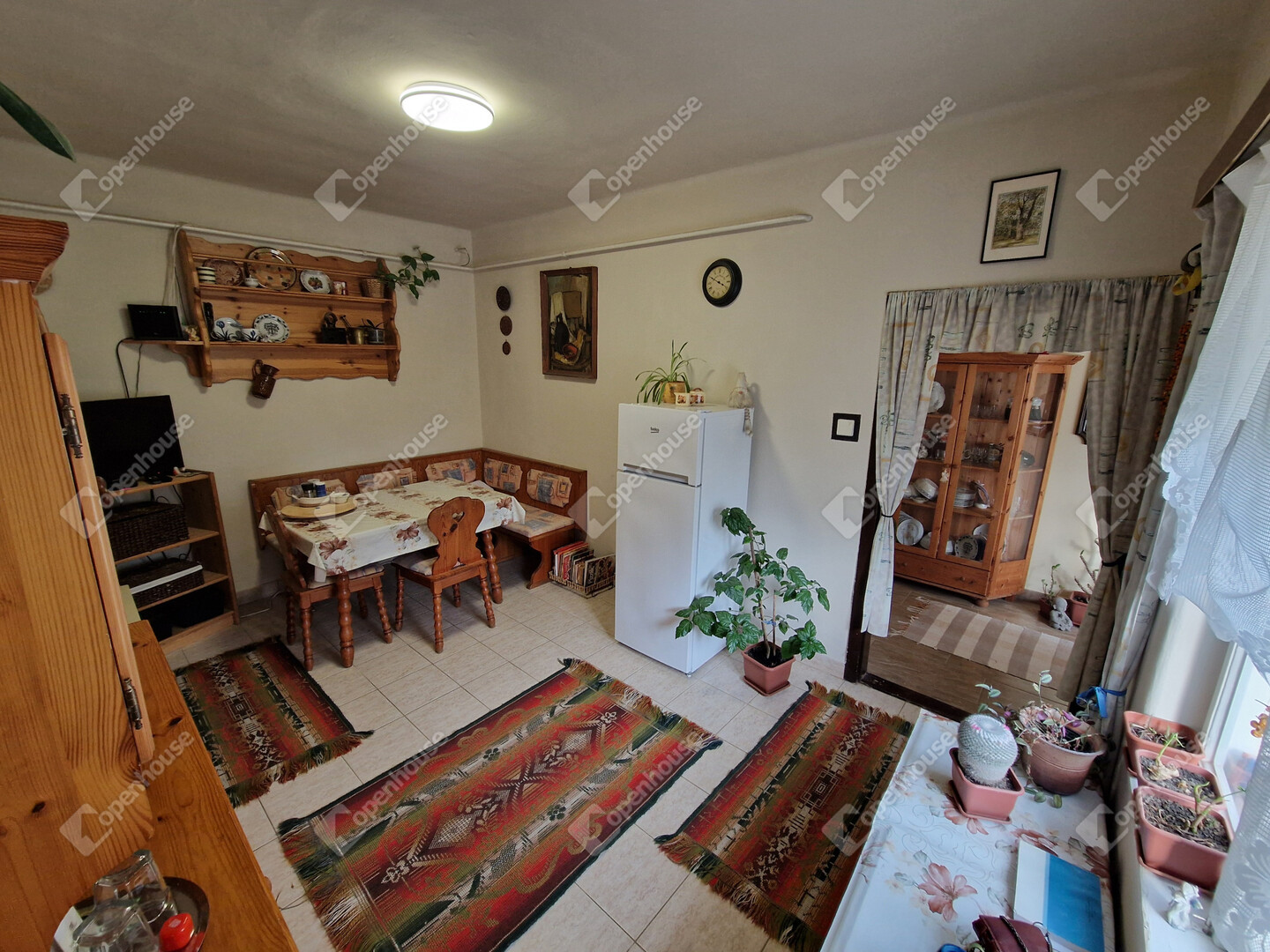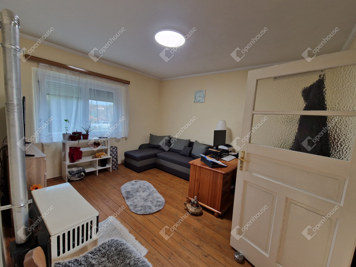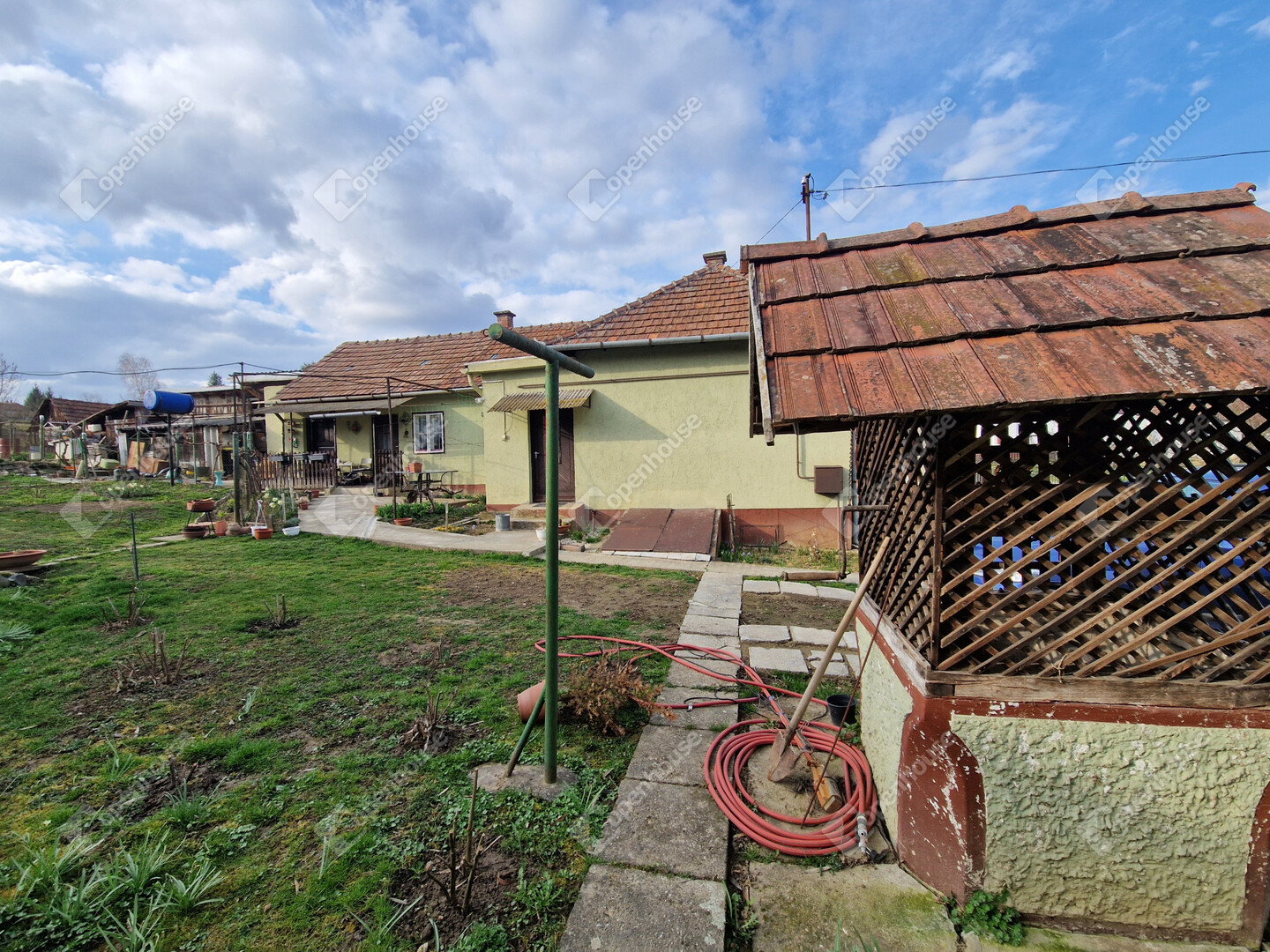 - Beton alap, cserép fedésű tető, fa nyílászárók, száraz falak.