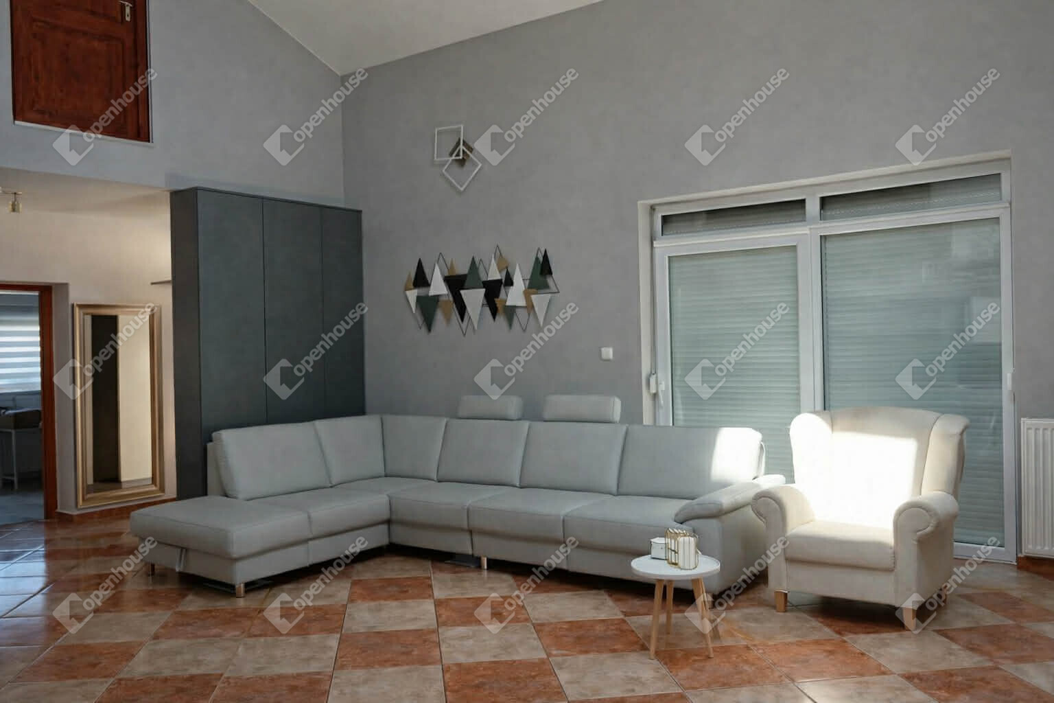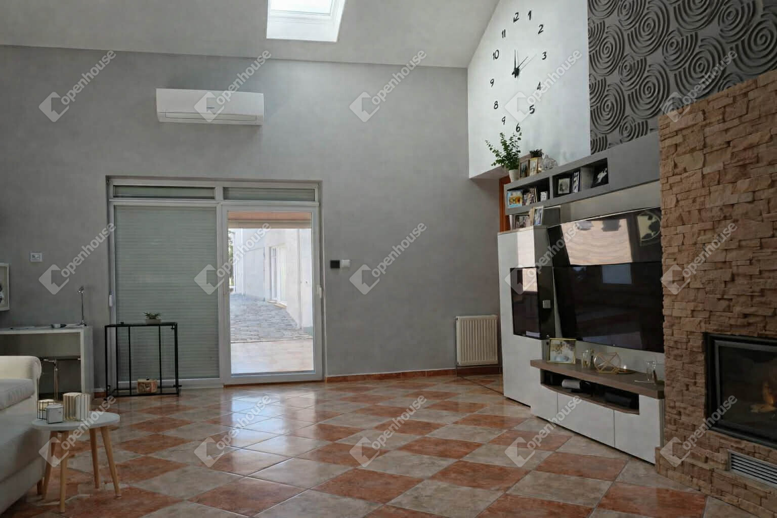 3 külön nyíló, világos hálószoba .Tágas, napfényes nappali kandallóval, amely a tér központi, meghitt eleme – Modern, jól szervezett élettér, praktikus elrendezéssel.Hatalmas terasz, ideális családi és baráti összejövetelekhez.