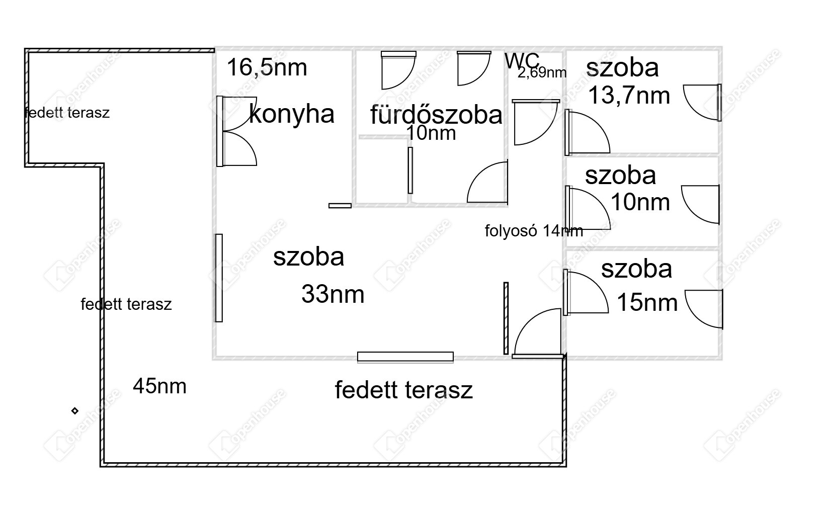 | Szoba | 10.00 m2 | Laminált padló |