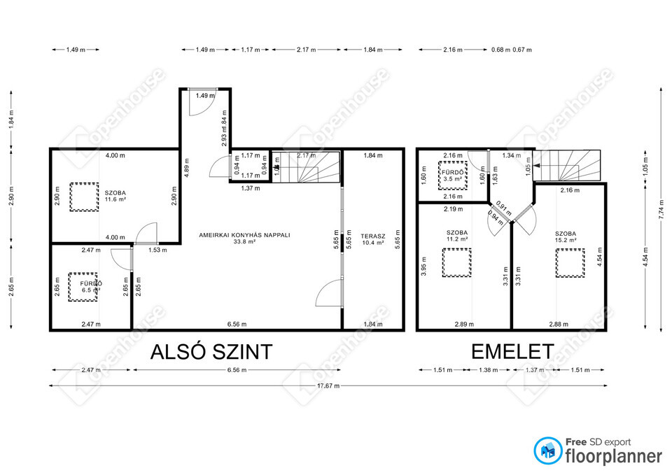 - Belső kétszintes kialakítás