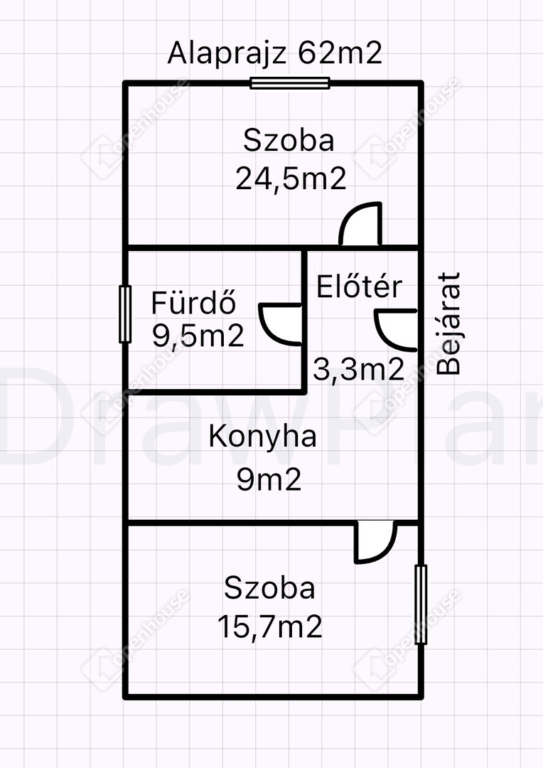| Előtér | 3.30 m2 | Járólap |