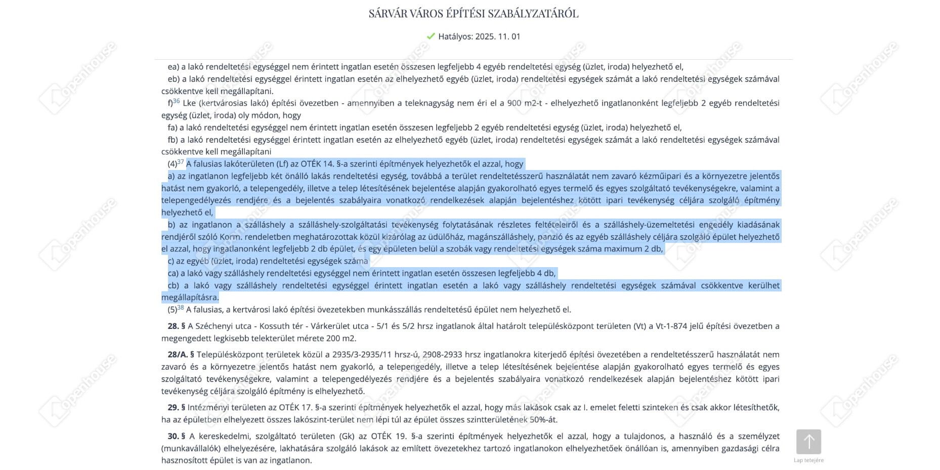 - továbbá bizonyos feltételek mellett üdülőház, magánszálláshely, panzió vagy egyéb szálláshely kialakítására is.