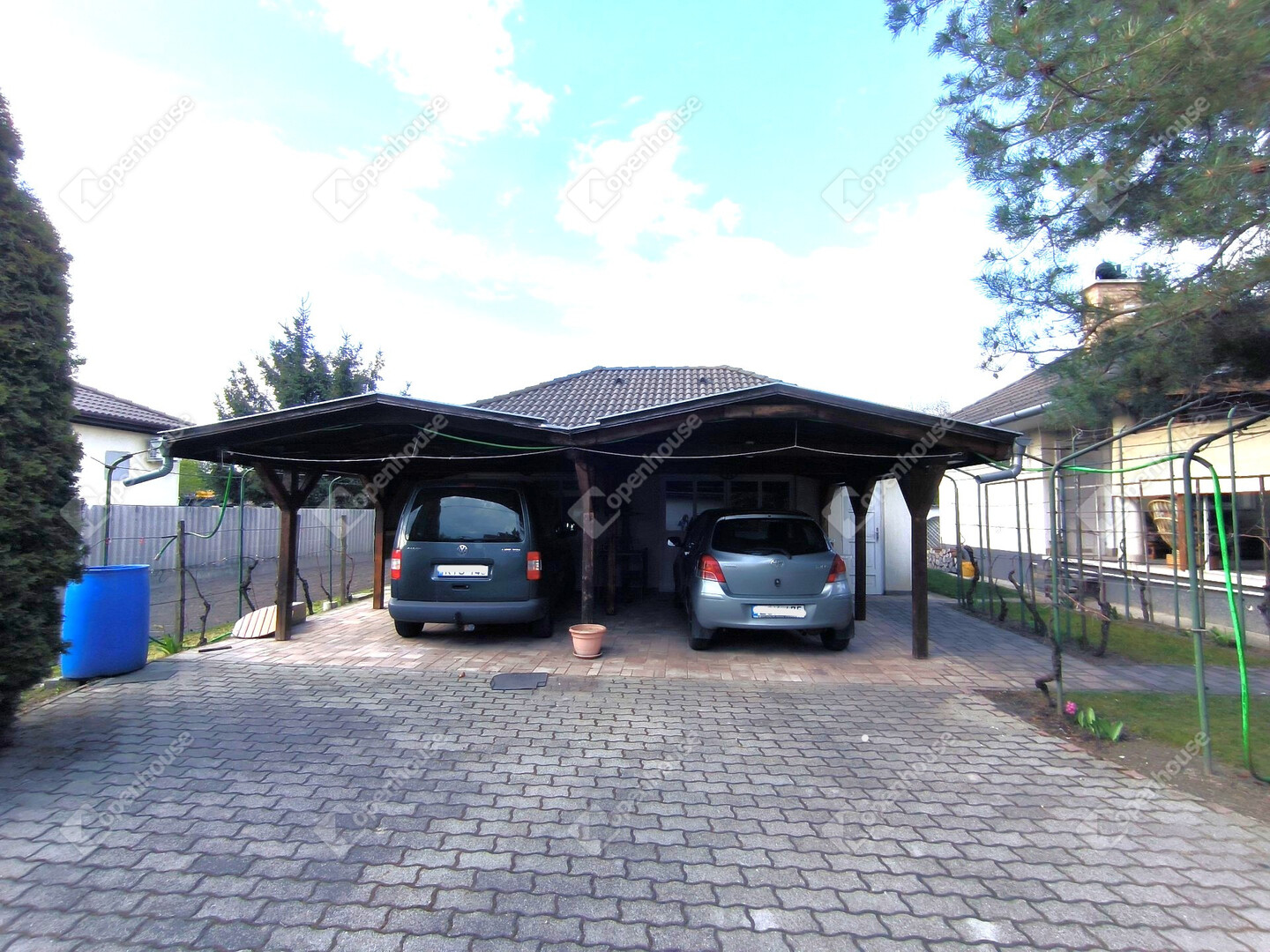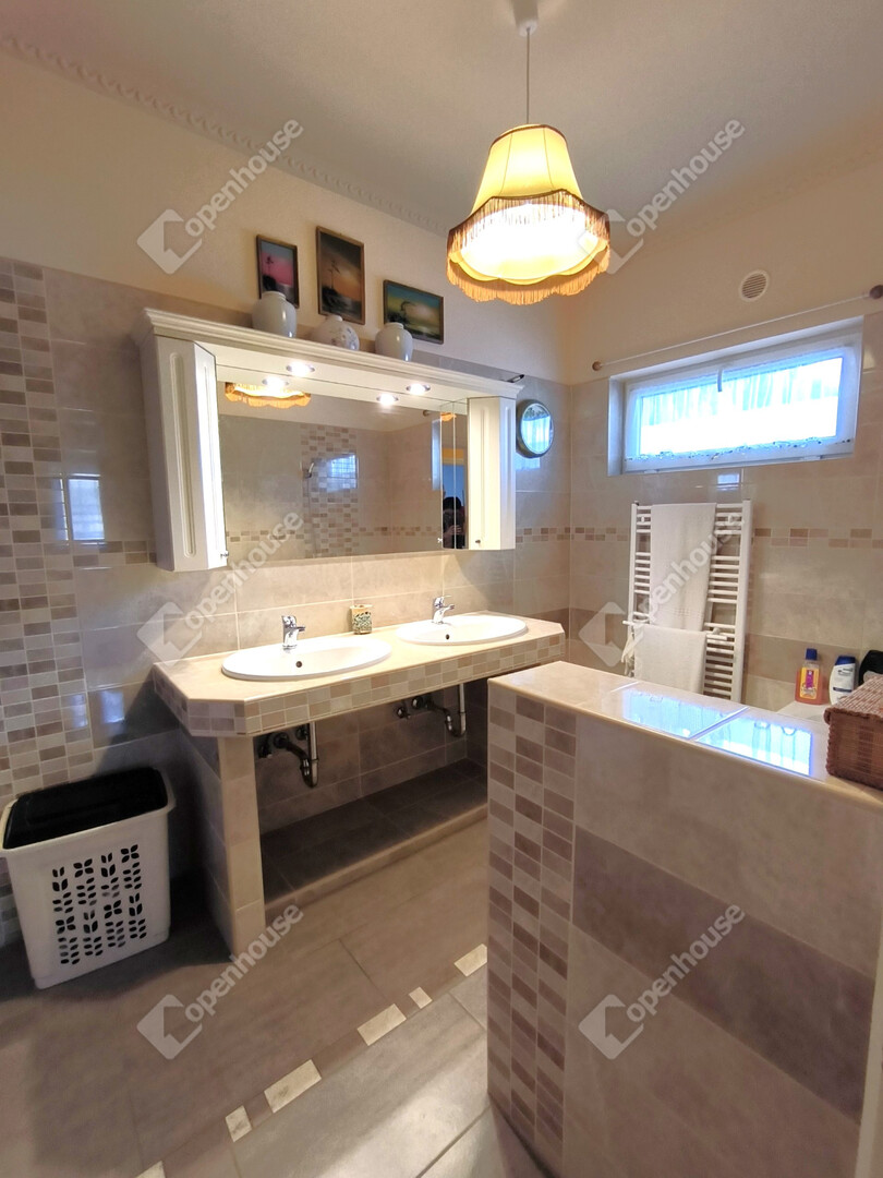 A kertben engedéllyel épült 45 m2-es melléképület van, mely akár garázsnak, akár külön lakóegységnek is kialakítható! Előtte 2 autó beállására alkalmas fedett beálló lett építve. A parkosított kert öntözése ˙(szintén engedélyezett) kútból történik, az udvar nagy része térkövezett. Az ingatlanba motoros kapun keresztül lehet bejutni.