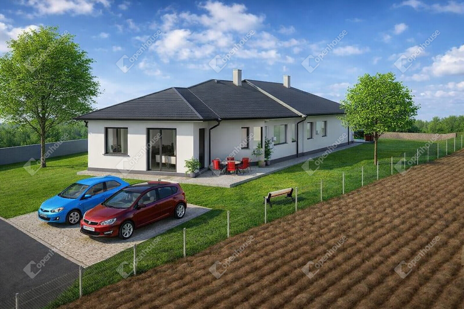 Akciós ár: 78 millió Ft helyett most 76,5 millió Ft, amely tartalmazza a telekhányadot is. Az ajánlat része egy ajándék térkövezett gépjárműbeálló, amely azonnali megtakarítást és kényelmes parkolást biztosít.