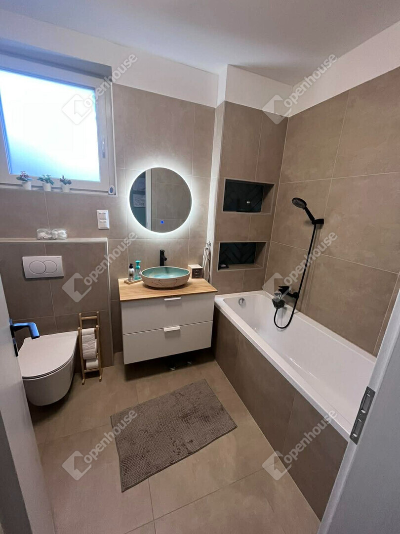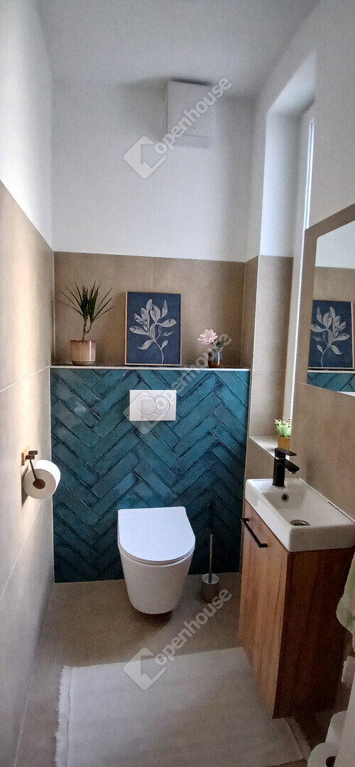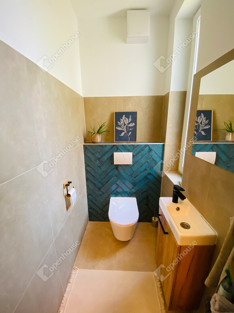 • külön vendég WC + tágas fürdő káddal és zuhanyzóval