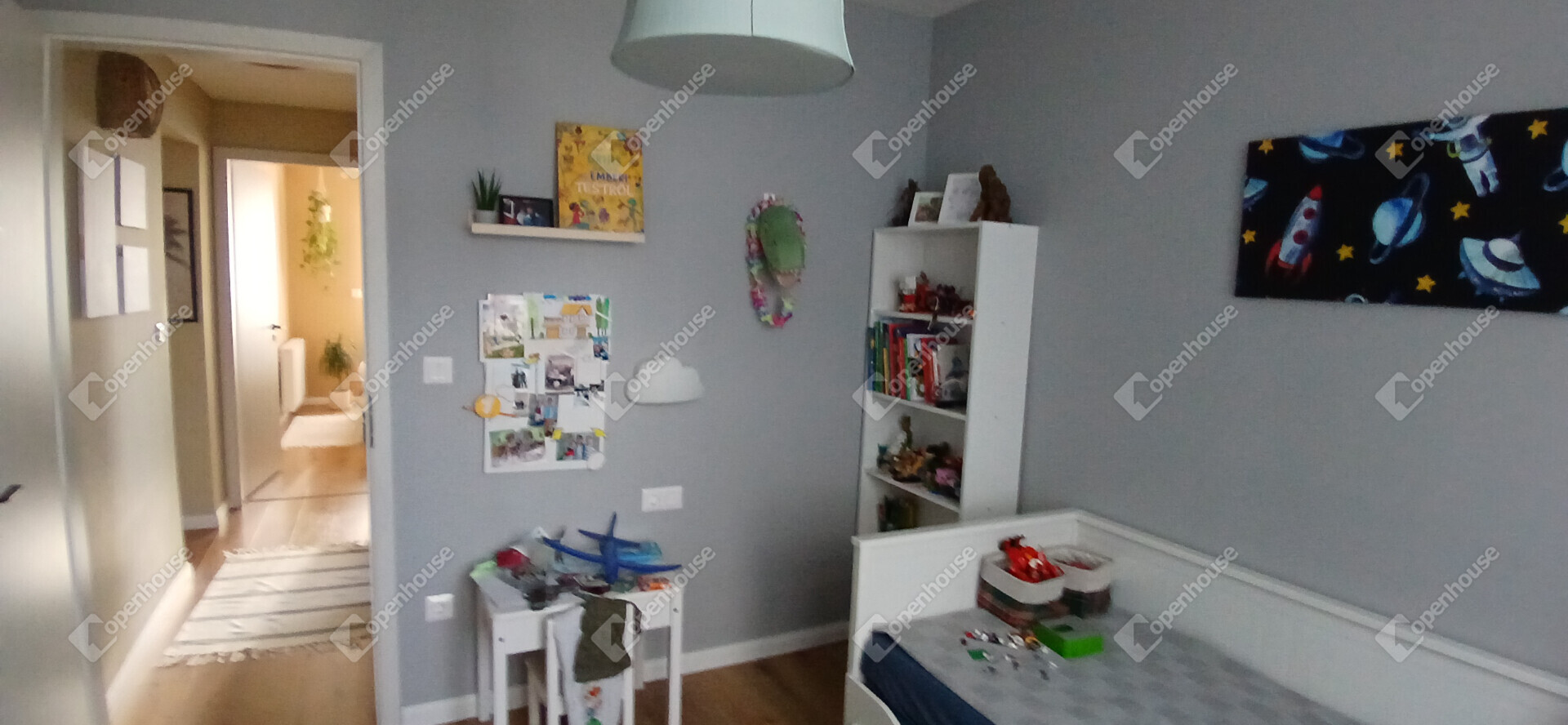 A zárt lakópark, a saját kert és a biztonságos környezet miatt ideális – a gyerek szó szerint „kifuthat” a nappaliból a kertbe.