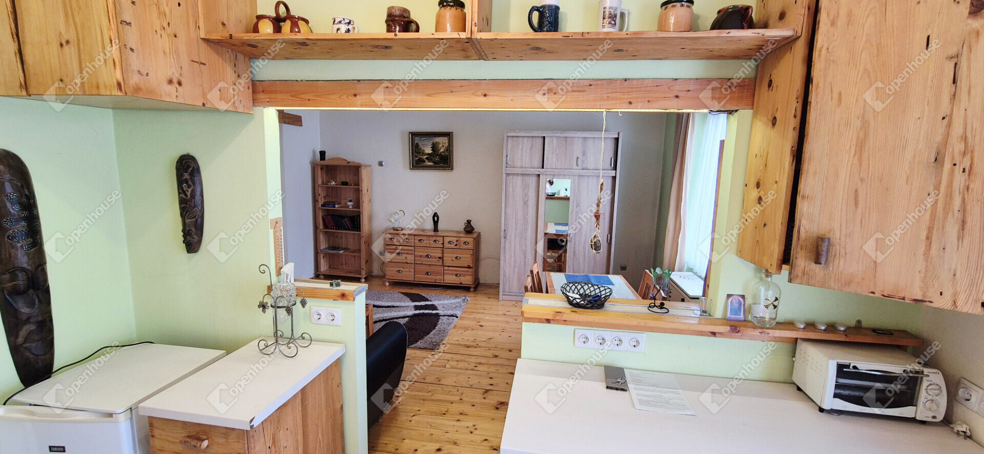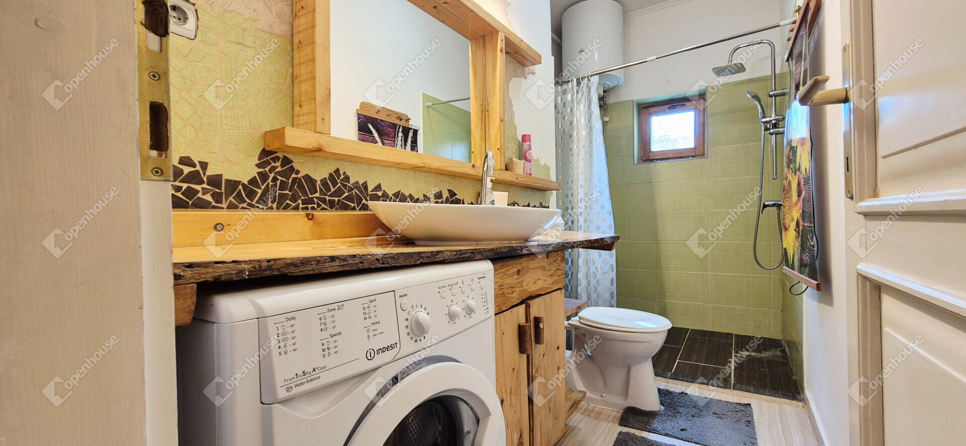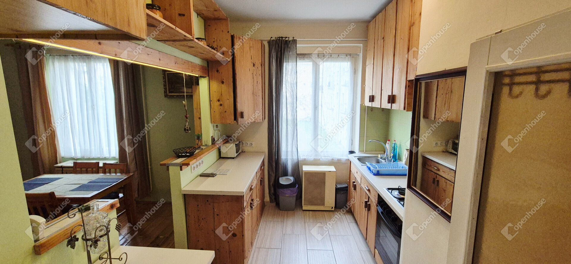 - a lakás bútorozott, egyedi fa megoldások a konyhában és a fürdőben egyaránt