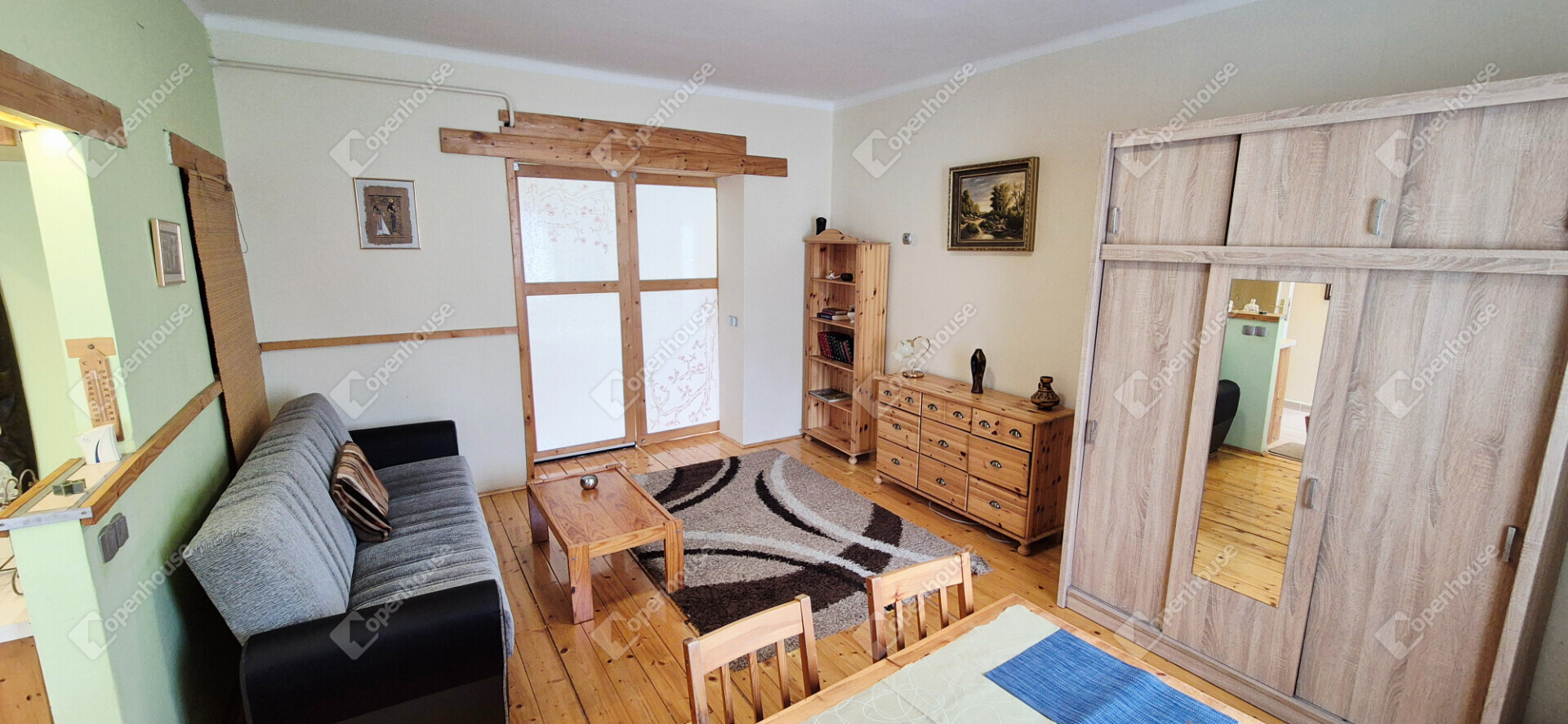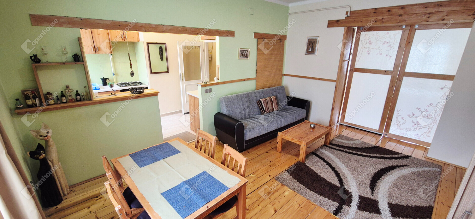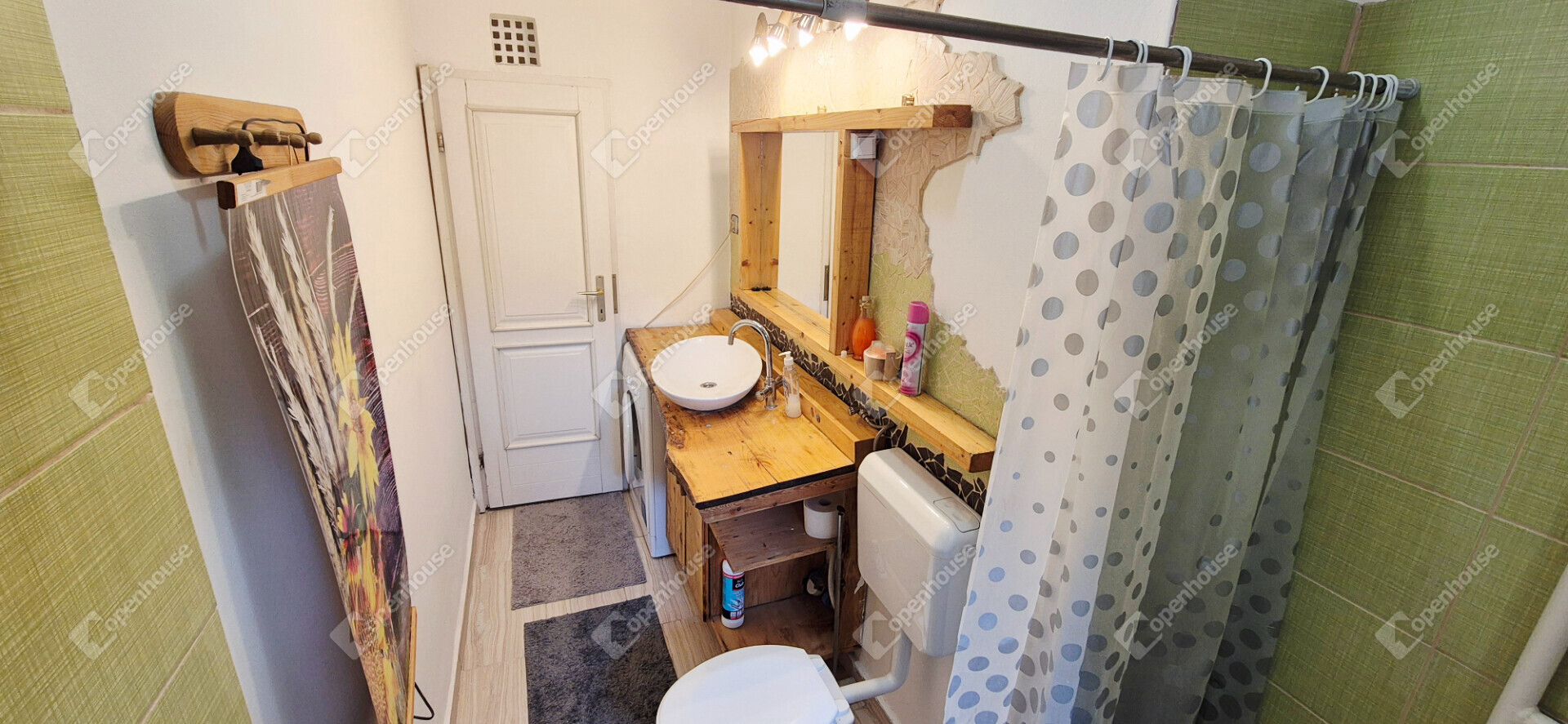 - a lakás bútorozott, egyedi fa megoldások a konyhában és a fürdőben egyaránt