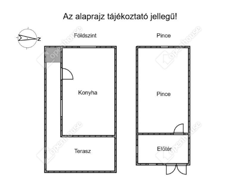 - Az alsó (pince) szinten egy előtér és egy tágas helyiség kapott helyet, amely tárolásra, műhelynek vagy akár borospincének is kiváló.