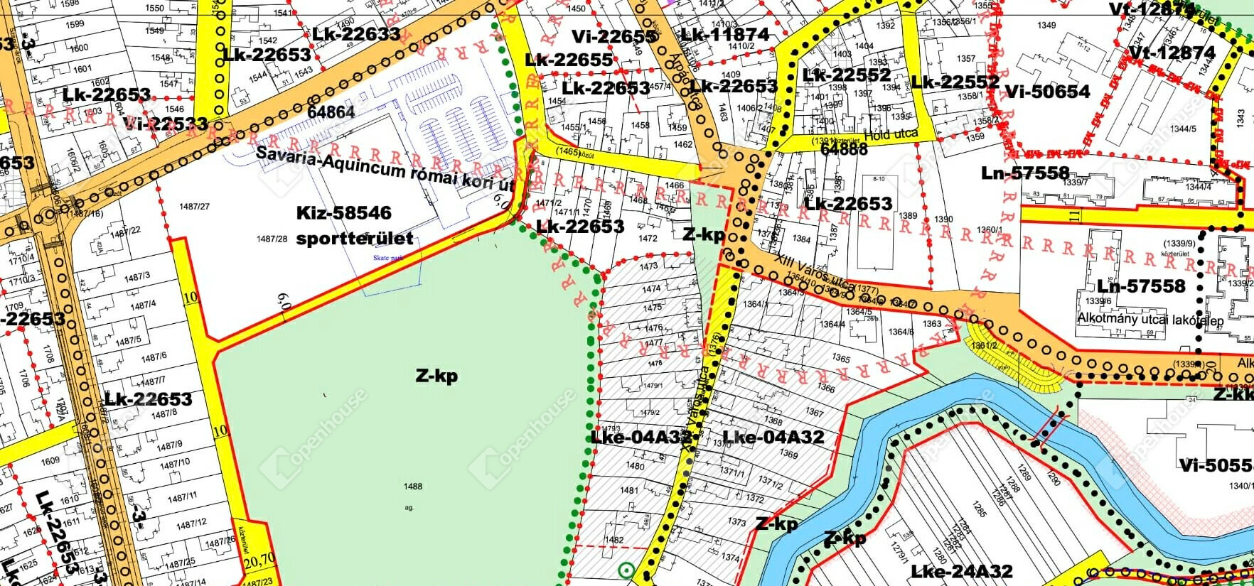 Az ingatlan belterületi, csendes környezetben helyezkedik el, és Lk-22653 kisvárosias lakóövezeti besorolású területen található. Ez a besorolás a helyi szabályok szerint lakófunkció szempontjából kedvező adottságot jelent, és a telek beépítési lehetőségei miatt hosszabb távon is értéket képviselhet. A szabályozás szerint az övezet oldalhatáros beépítést, legalább 500 m²-es minimális telekméretet, legfeljebb 40%-os beépíthetőséget, minimum 30% zöldfelületet, valamint kb. 6,5 m megengedett épületmagasságot rögzít.
