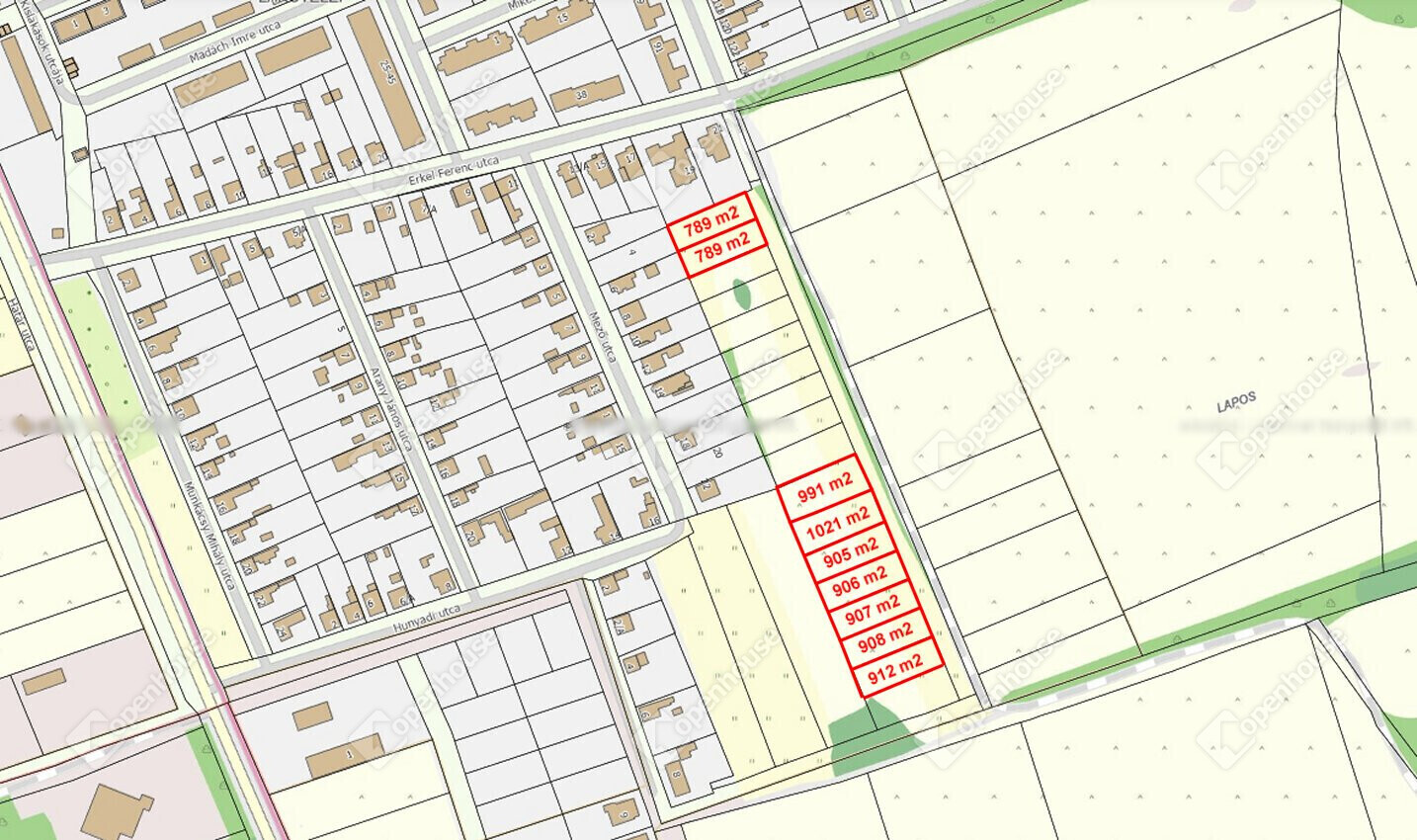 - 789 és 1021m2 közötti méretek, frissen alakuló utca