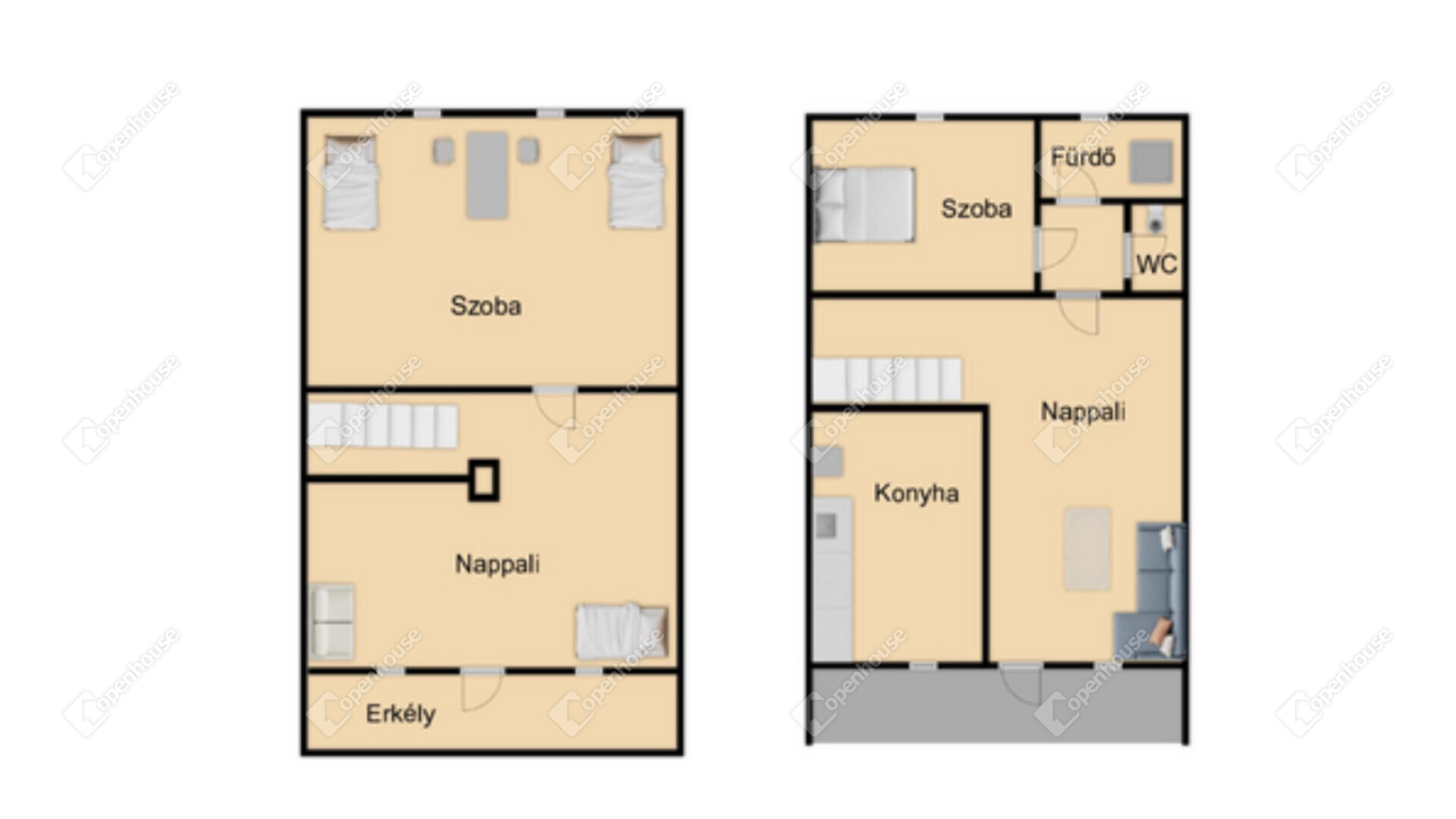 - 3 szoba + 1 nappali + 1 fürdőszoba + wc + 1 fedett erkély