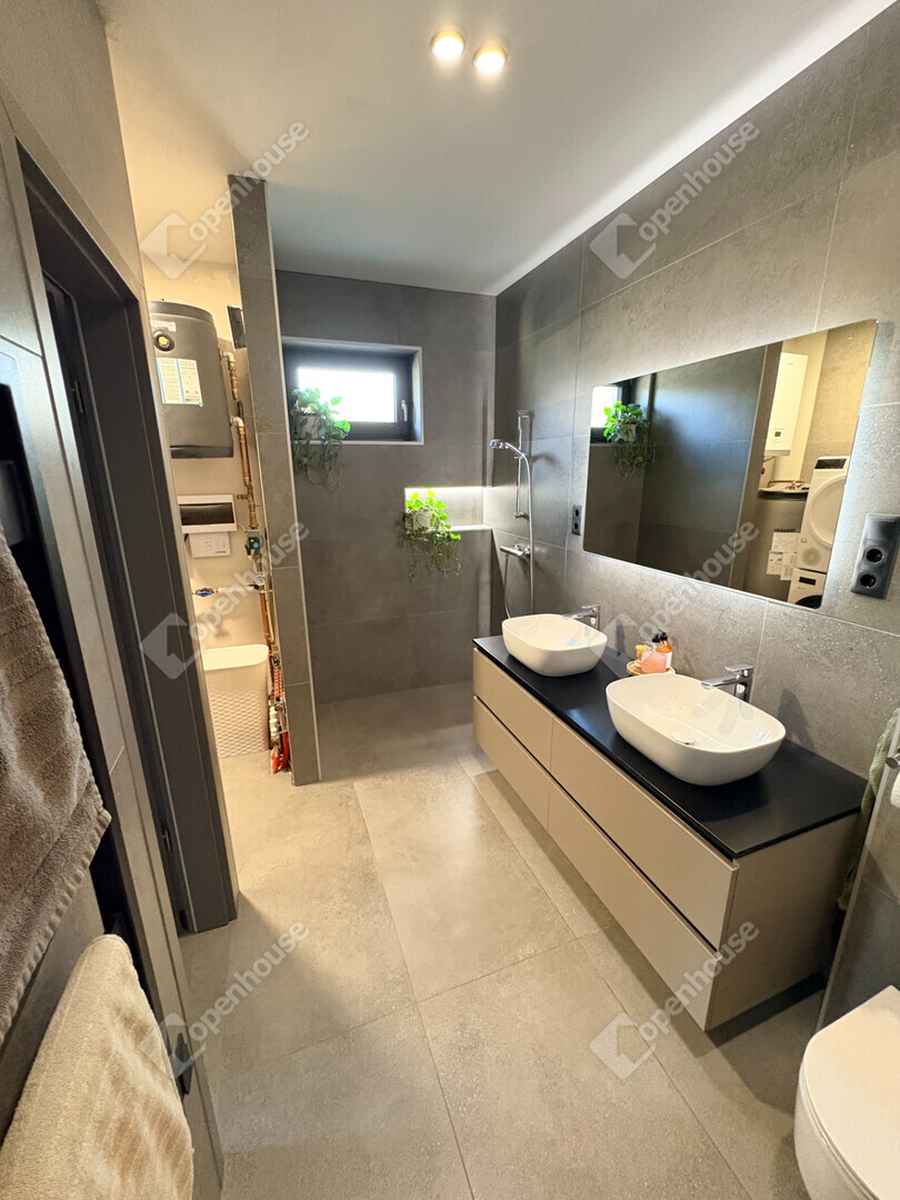 Győrújbarát egyik legkedveltebb, elit kertvárosi részén, közvetlenül egy Natura 2000-es természetvédelmi terület szomszédságában kínálunk megvételre egy 2024-ben épült, újszerű, prémium családi házat, amely minden részletében a minőségről és a tudatos tervezésről szól.