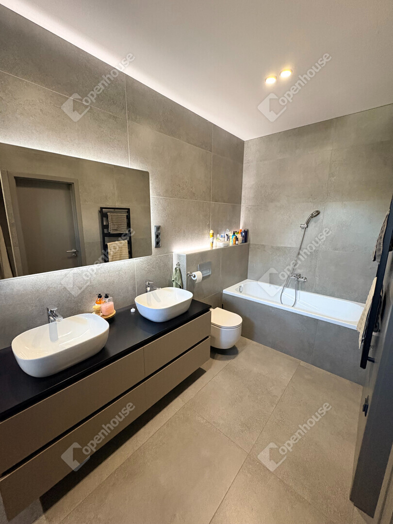 - Tágas fürdőszoba dupla mosdóval