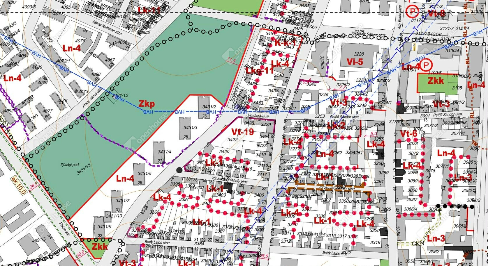 A telek Lk-4 kisvárosias lakóövezetben található, amely a belvárosi környezethez illeszkedő, sokoldalúan értelmezhető fejlesztési lehetőséget hordoz magában. A terület kiváló alapot jelenthet társasházi fejlesztéshez, üzleti célú átalakításhoz, irodai, rendelői vagy szolgáltatói funkció kialakításához, de akár olyan koncepció is megvalósítható, ahol a lakó- és üzleti funkció egymás mellett, egymást erősítve jelenik meg.