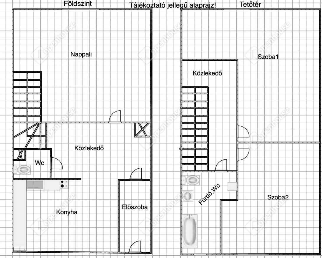 - alsó szinten nappali és konyha, felső szinten 2 nagy szoba