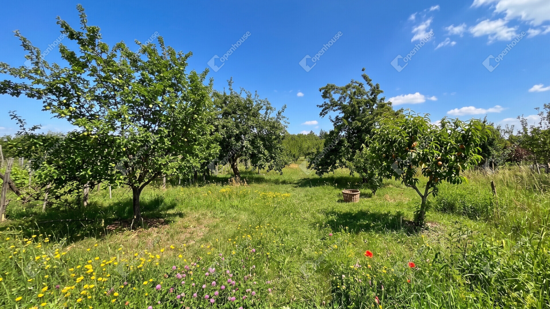 A telek adottságai igazán egyediek: kényelmes művelésű, gondozott, gyümölcsfákkal beültetett terület. Az épület mögött a telek enyhén lejtőssé válik. A kertben többféle gyümölcsfa található, így a természet közelsége és a saját termés öröme is egyaránt fellelhető.