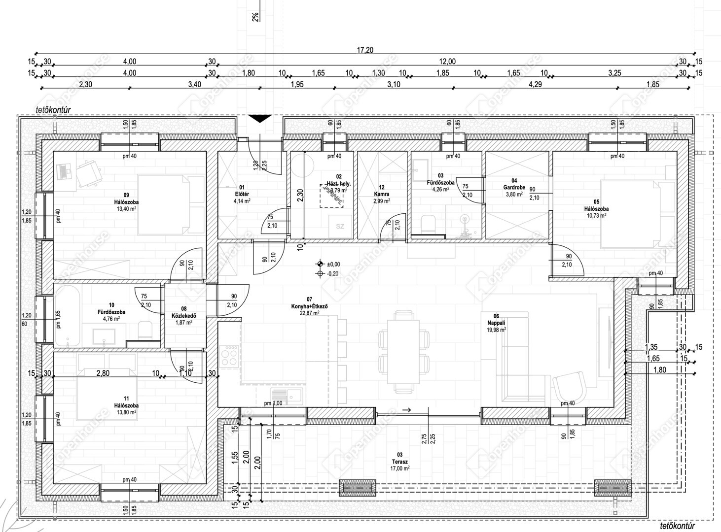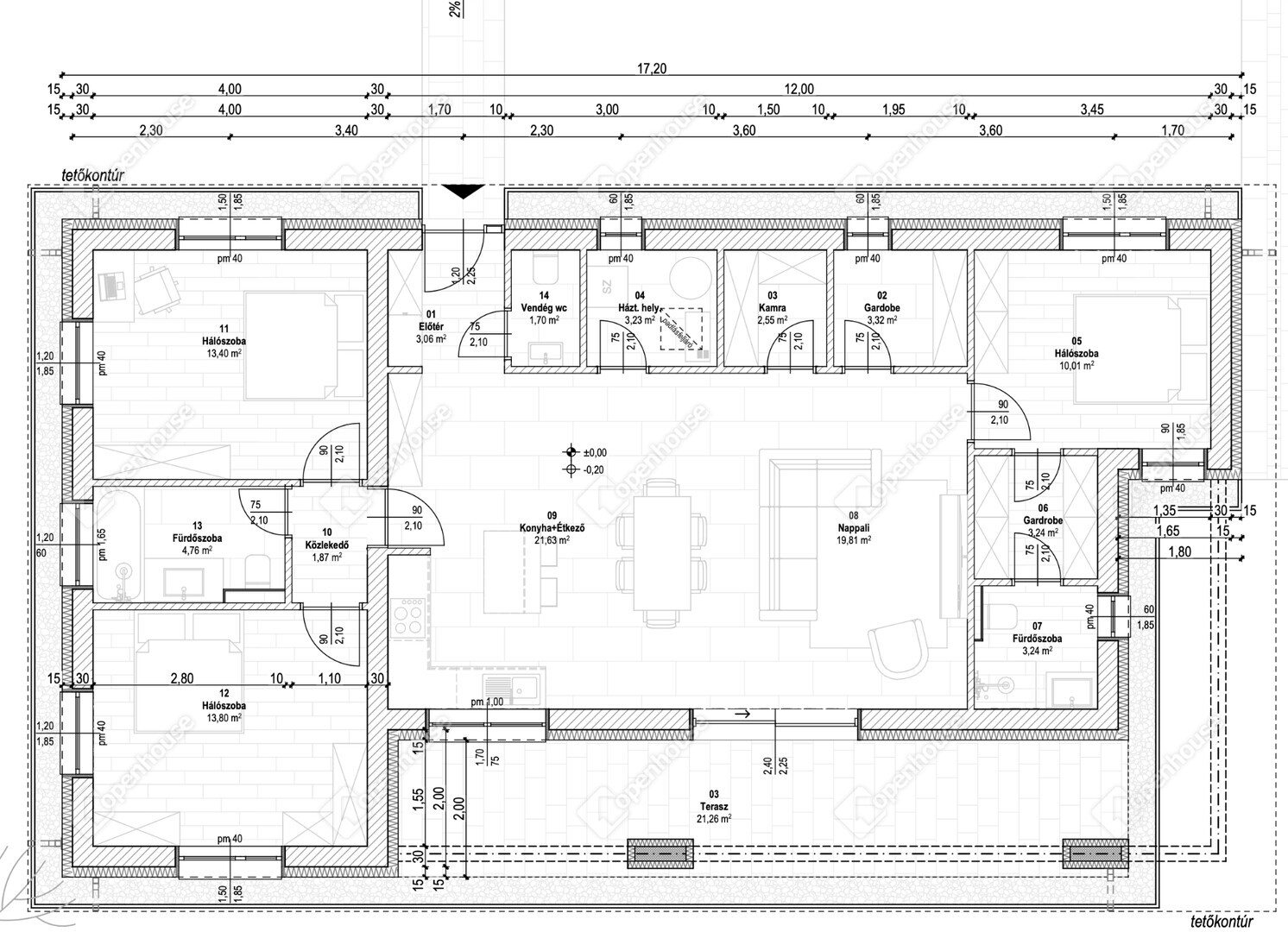 Alapterület: 106 m² lakótér + 17 m² fedett terasz.