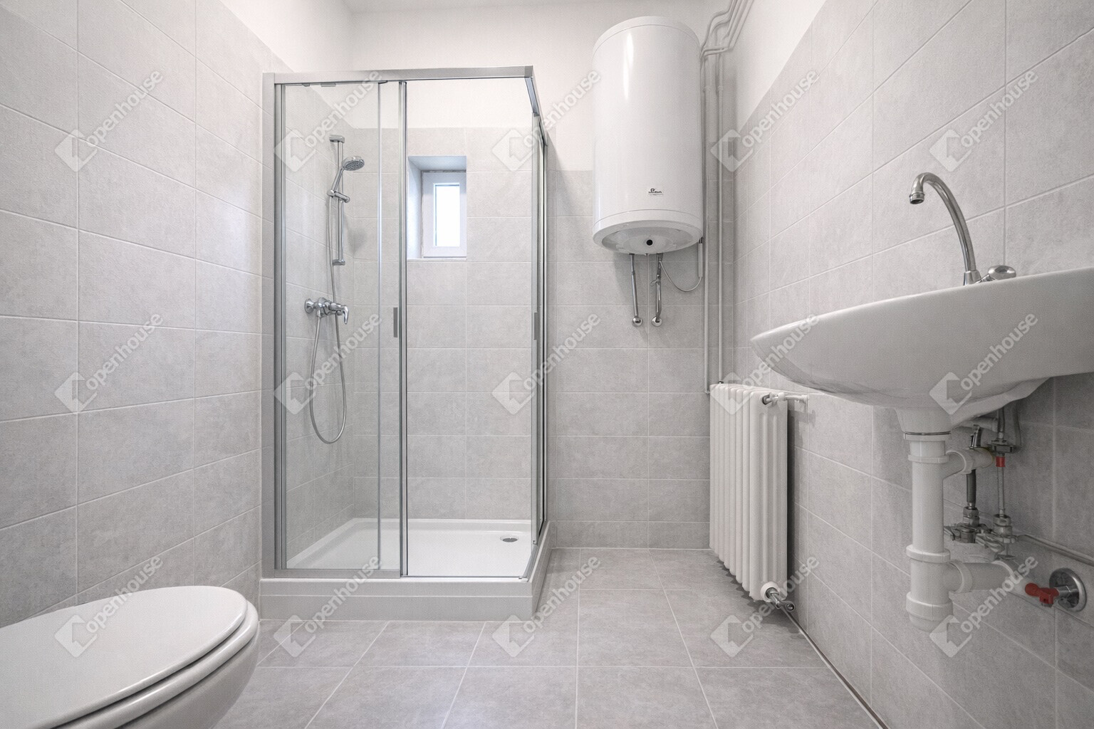 A fürdőszobában zuhanyzó található, a melegvizet villanybojler adja. A kis méretű ablak ideális szellőztetést biztosít.