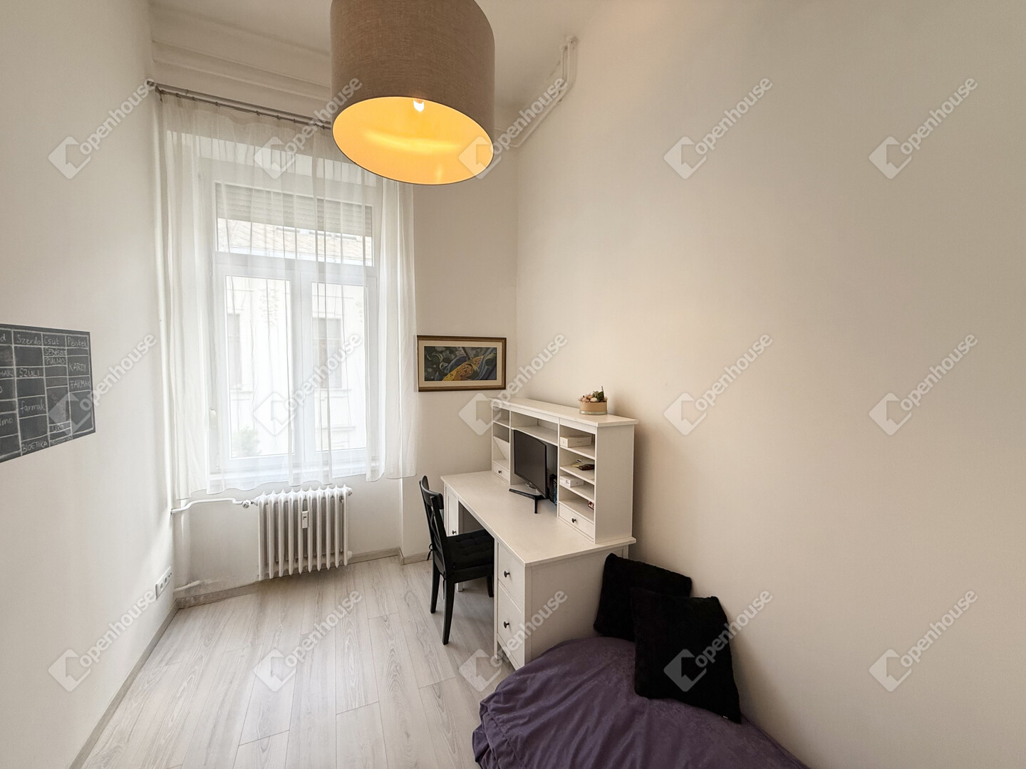 A lakás különlegessége a 380 cm-es belmagasság, amely tágas, világos tereket biztosít. A nagy ablakoknak köszönhetően a nappali egész nap napfényes, miközben az ingatlan ablakai a csendes, gondozott belső udvarra néznek, így a belvárosi pezsgésből semmi nem zavarja a nyugalmat.