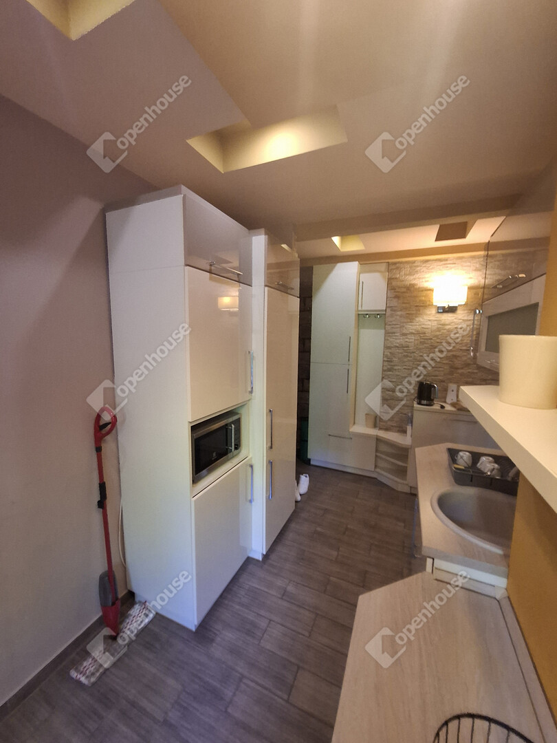 beépített, gépesített konyha (sütő, főzőlap, hűtő)