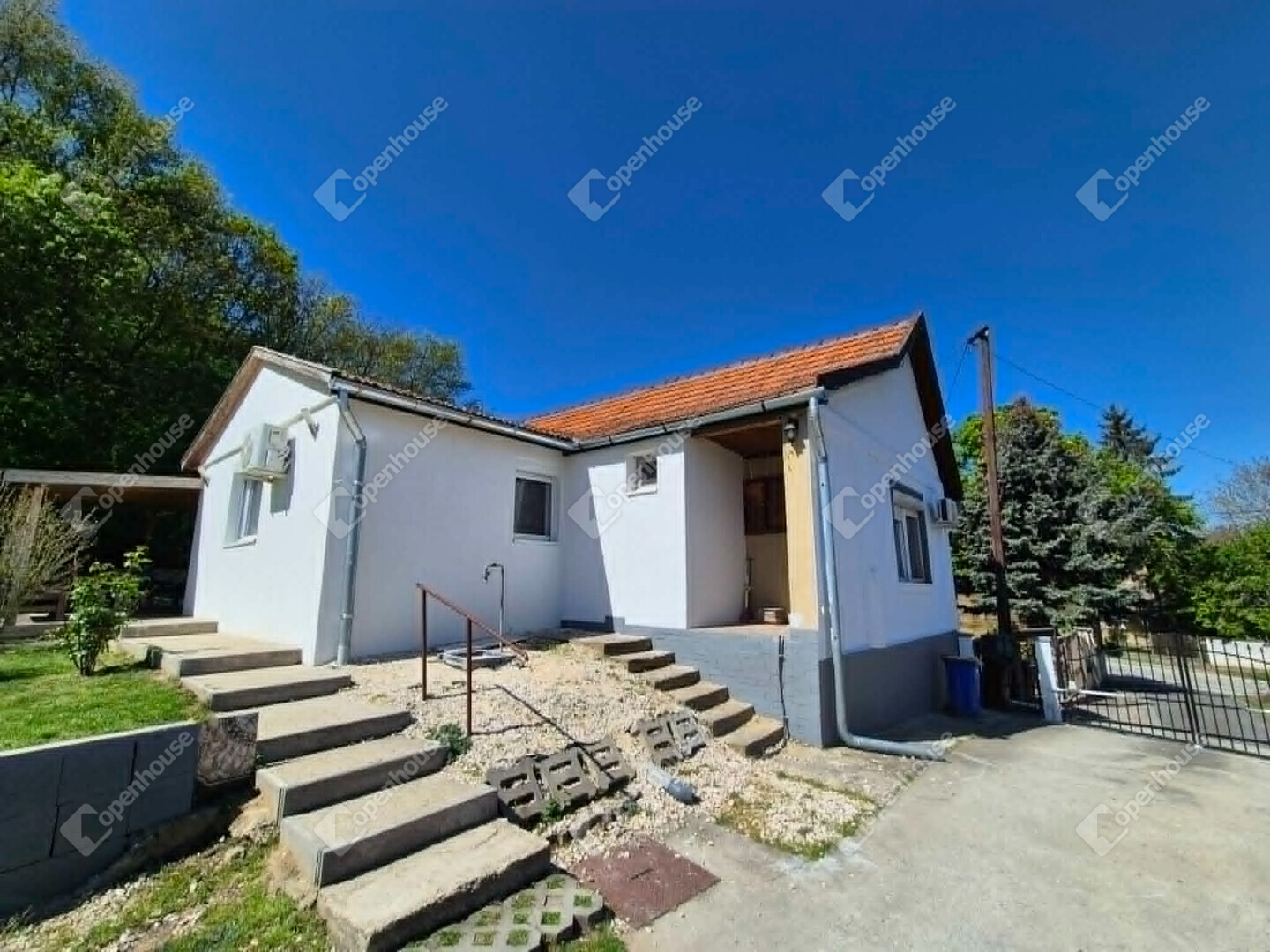 Gáz cirkó fűtéssel és klímával felszerelt fűtéssel-hűtéssel van ellátva a ház. Hatalmas kertjében található egy kocsi részére beállást biztosító garázs. A bejárati ajtó egy szép nagy teraszról nyílik, mely a kert vége felé néz, így beláthatjuk az egész szép zöld kertet. Az ingatlan a főutcáról nyíló kis zsákutcában található, ahová csak ennek és a szomszéd ingatlannak van bejárása, így egy teljesen nyugodt, csendes környezetet biztosítva lakóinak.