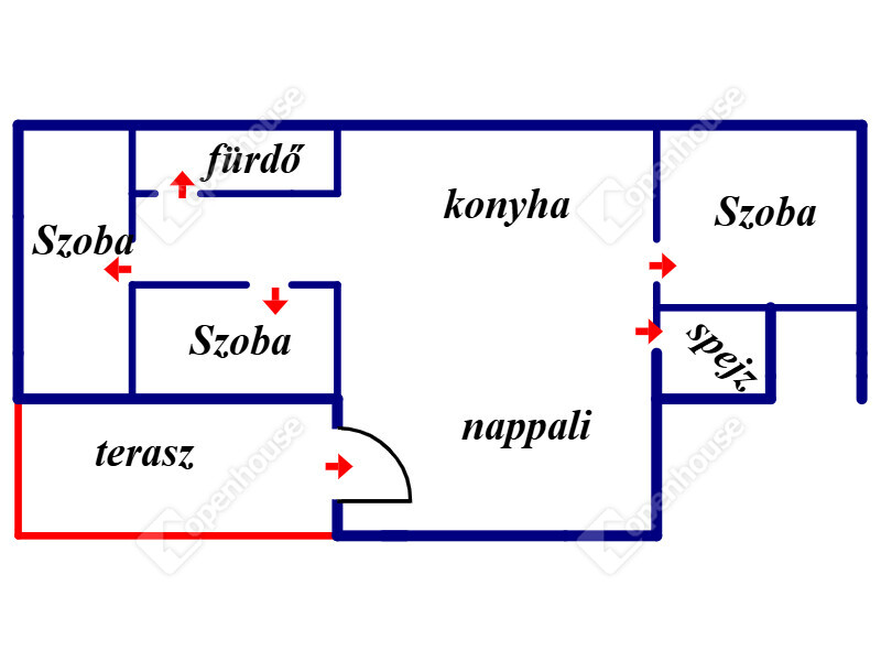 A házban található 3 külön nyíló hálószoba, + egy amerikaikonyhás nappali, sarokkádas fürdőszoba, előszoba valamint egy kamra.